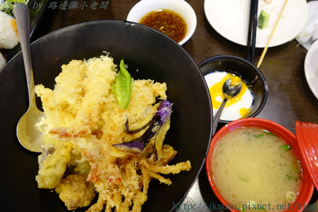 蝦天婦羅丼飯($240) 還有附湯和甜點! 天婦羅的內容也超豐富~除了炸蝦,還有魚肉.香菇.金針.芋頭.番薯.茄子.....